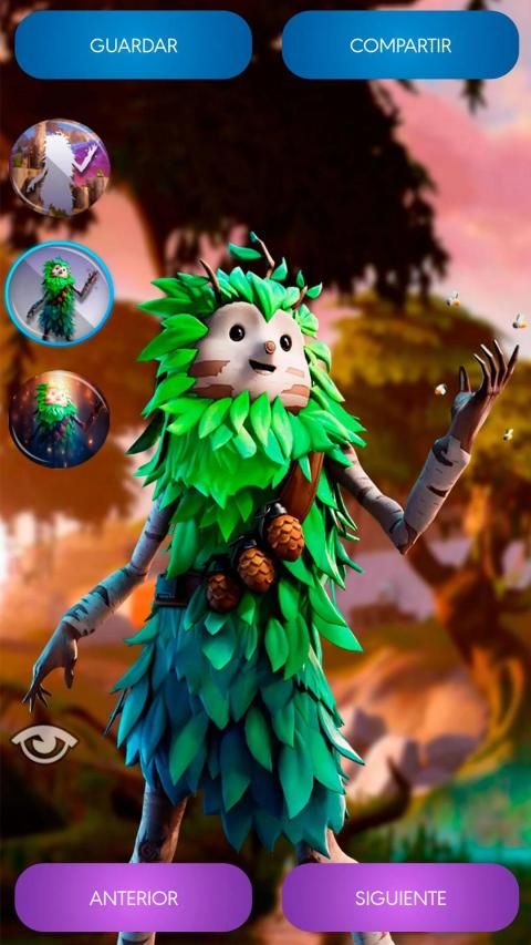 - 3 buttons to select the background (Battle Royale map scenario), the main skin of the wallpaper, or the FX (access to 6 exclusive backgrounds created specifically for our app).