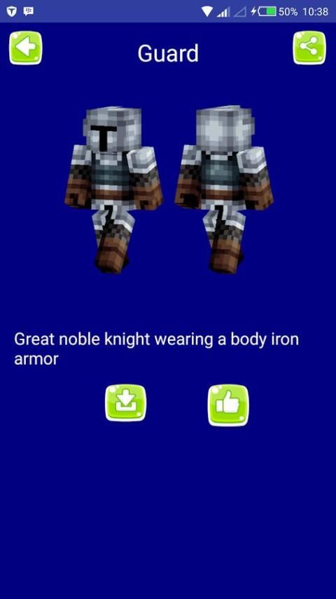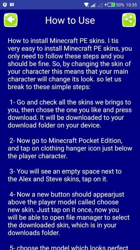 Yang perlu Anda lakukan adalah men-download aplikasi, klik karakter minecraft favorit Anda, kemudian klik tombol "Download Skin". download cepat, dan sederhana.