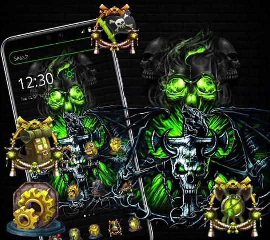 RyCoba tema peluncur tengkorak hitam dan hijau yang mengerikan ini untuk lebih menyenangkan. Tengkorak mati yang unik dirancang dengan cara terbaru. Anda harus menerapkan tema peluncur tengkorak mati ini karena setiap ikon memiliki gambar horor yang berbeda-beda untuk menyesuaikan ponsel Anda.