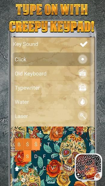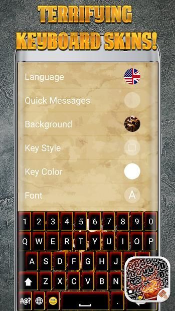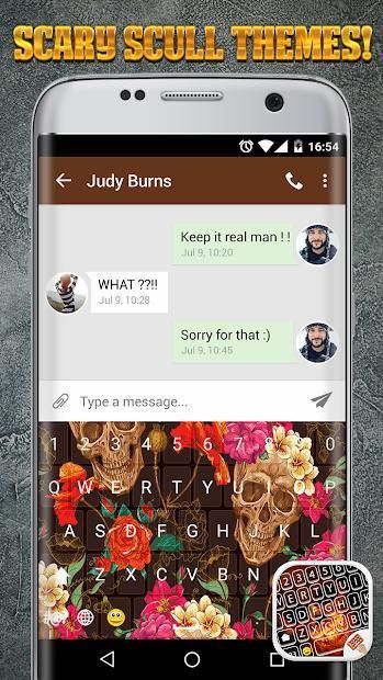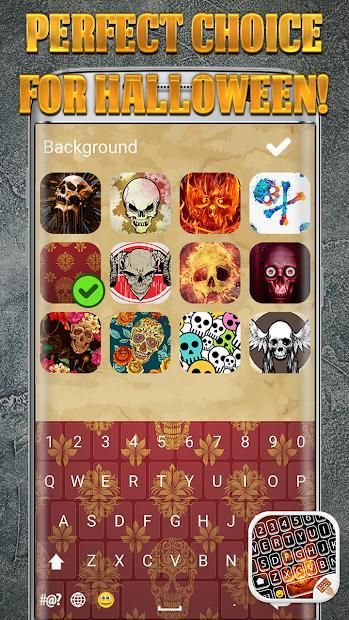 If you are bored with those standard keyboards your phone has, try this new popular Skull Keyboard Theme app that brings you the biggest collection of the most horrifying background skins on the market! Make a change in your life, and start out with the coolest "Halloween keyboard" designs for your phone display! Enjoy the best "scary themes" and share them with your friends.