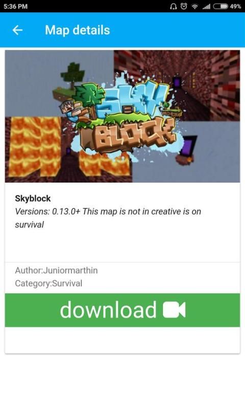 peta minecraft Skyblock untuk mcpe adalah salah satu minemaps paling populer. Satu orang, satu pulau dan satu pohon. Apakah Anda siap untuk bertahan hidup dengan peta survival skyblock untuk minecraft pe? Jutaan orang bermain dengan kelangsungan hidup peta minecraft setiap hari. Apa rahasia popularitas? Sebuah ide yang jelas, kontrol sederhana, dunia yang terbuka dan minecraft arena pvp untuk permainan menjadi kunci keberhasilan.