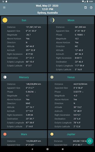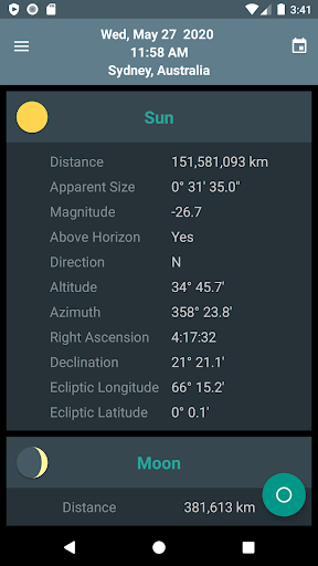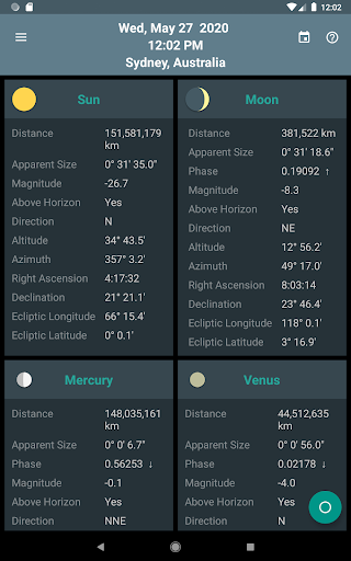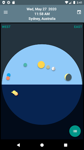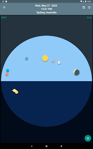 Skywheel adalah peta langit sederhana yang menunjukkan sekilas posisi matahari, bulan dan planet di lokasi Anda saat ini.