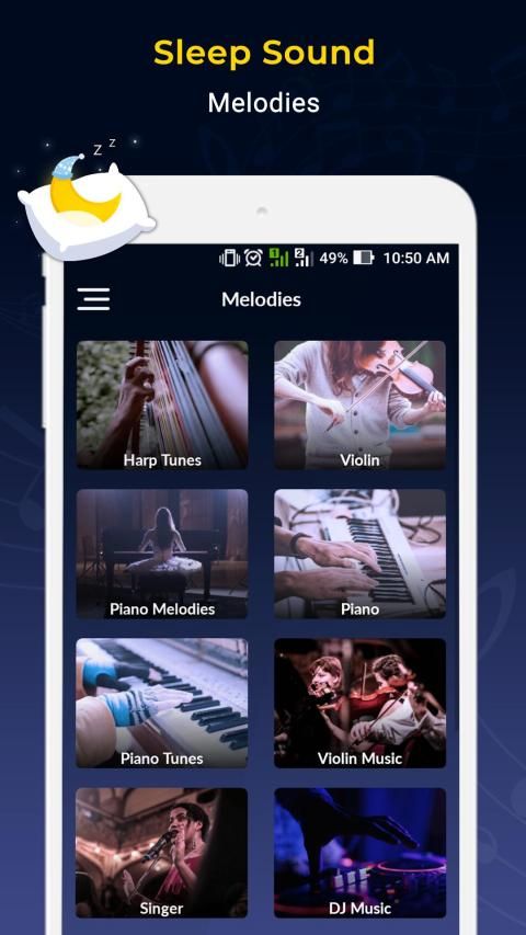You can Set Violin Timer by this Great App and Set all Types of Sound Like Bird Sound, Cave Sound, Cricket, Driving, Heavy Rain, Forest, etc.