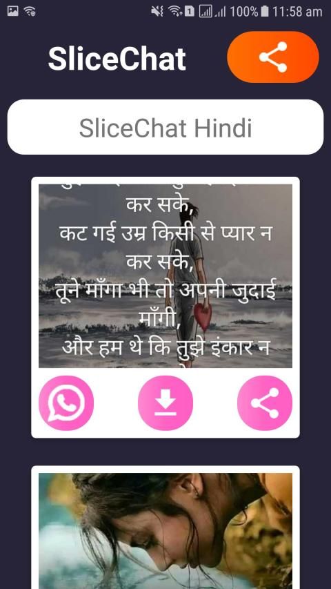 SliceChat: India's slanting Hindi substance disclosure application with heaps of clients to share and download free status recordings, share post with friends, most recent occasions and patterns in Hindi Indian dialects.