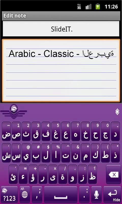 العربية برنامج مجموعة اللغة، بالنسبة للوحة المفاتيح SlideIT، الإصدار 5