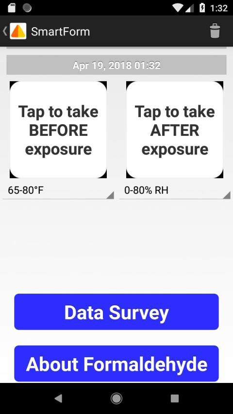 This app works with color-changing badges to measure formaldehyde. We spend 90% of our time indoors and the air in most of our homes contains formaldehyde. Formaldehyde exposure can worsen health. This app and badge system allows users to measure their indoor formaldehyde exposure. The app provides information on recommended formaldehyde levels and tips on reducing exposure if the concentration is high. Users will also be given the option to upload their results and complete a survey to create a national database of formaldehyde levels. The survey will ask about housing characteristics and also include the option to report health symptoms. This database will help researchers and community scientists better understand formaldehyde in housing.