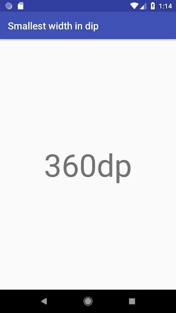 Launch this app to immediately and clearly see your device's smallest width in density-independent pixels (dip, dp).