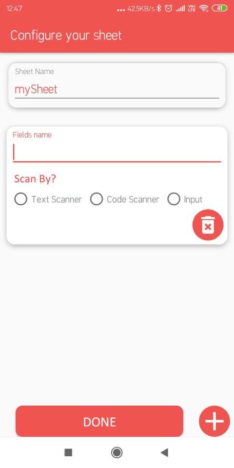Unggul pemindai-Pertama Anda harus memasukkan nama sheet dan kemudian Anda dapat menambahkan kolom dan menyebutkan jenis input kolom seperti pemindai kode, pemindai teks atau tipe input setelah melakukan ini, Anda dapat menyimpan sheet ini dan mulai memindai.