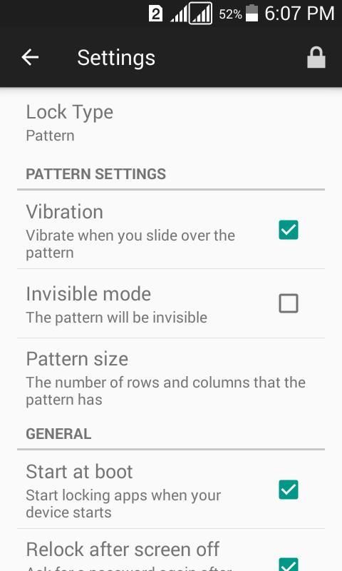 * Kunci semua aplikasi melalui pola (misalnya, Galeri, Kamera)