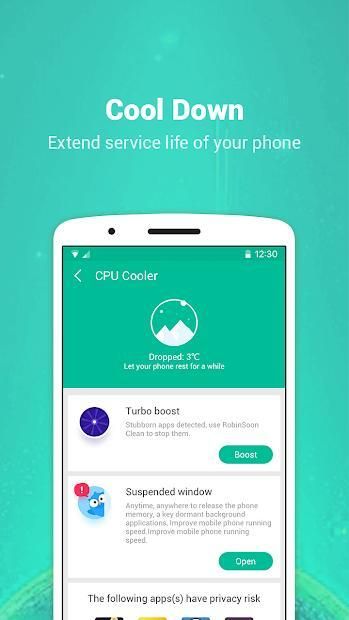 Fungsi termasuk pembersih sampah, penguat memori, penguat permainan, pengelola aplikasi, penghemat baterai, Pendingin CPU, dan App Locker.