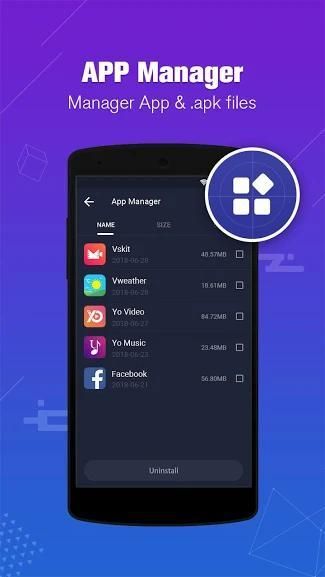 Bantuan untuk menganalisis aplikasi di ponsel android, dan bersihkan file cache aplikasi yang tidak berguna dengan aman. Pembersih tembolok yang cepat dan cepat ini membantu untuk melepaskan lebih banyak ruang.