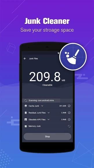 Junk Cleaner membantu untuk menganalisis semua file log, file sementara, file riwayat, dan file AD, dan kemudian merekomendasikan untuk membersihkan file sampah sisa yang tidak berguna untuk melepaskan lebih banyak penyimpanan ponsel.