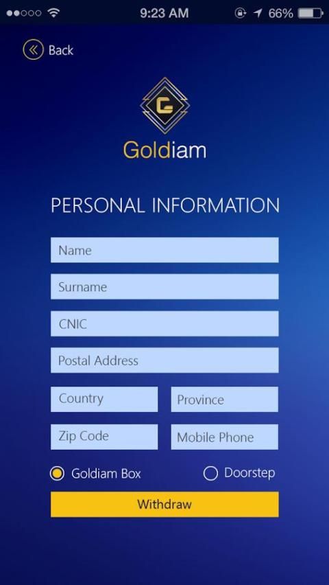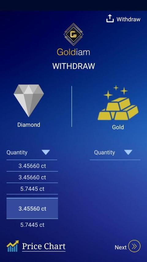 Melalui platform ini, para investor atau pengguna akan dapat membeli emas atau berlian (s) dengan koin Goldiam dan menjaga aset mereka selama mereka inginkan. Menjaga aset dalam dompet untuk setidaknya satu bulan, pengguna akan dihargai dengan koin Goldiam. Jadi, pengguna dapat memiliki Goldiam koin, Gold atau Berlian (s) di / dompetnya. Pengguna bahkan akan memiliki pilihan untuk menarik emas atau berlian (s) ia / dia memiliki dalam dompetnya. Dalam hal demikian, perusahaan bermitra dengan Goldiam akan mengirimkan aset ke alamat pengguna dengan keamanan yang tepat dan lisensi. Goldiam telah bermitra dengan beberapa emas dan berlian perusahaan perdagangan berharga yang akan membantu kami memastikan kualitas platform.