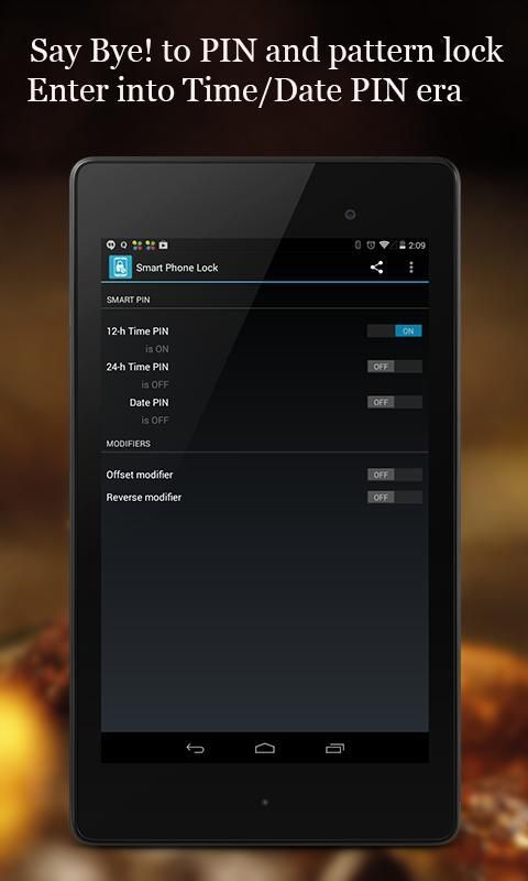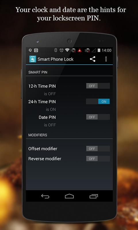 Smart Phone Lock will set the current phone time as your unlock PIN for the lock screen. It will change the PIN magically on every minute! So, each time you unlock the device, the PIN will vary and you need not worry about prying eyes around you. The best part is, you need not memorize anything to remember the PIN. The modifiers will allow you to enhance the security to the next level.