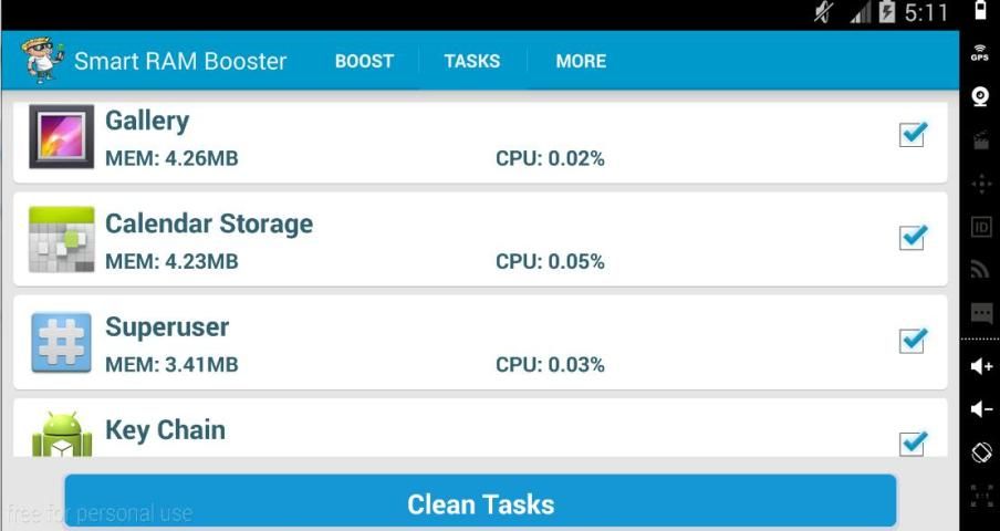 Smart RAM Booster 2016 is a powerful & beautiful memory cleaning app designed for Android devices which will make your device work faster. The application uses a sophisticated technology to optimize the performance of your device. It can clear background running apps very fast. For maximum results you should do a manual boost once a day. Most of Android devices bundle with limited memory. Android task manager will selectively kill low priority tasks in order to reserve memory to higher priority task.