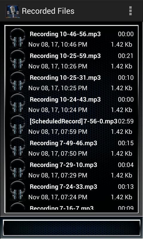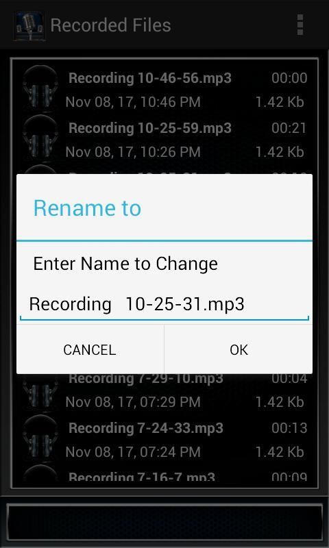 4) Mudah Mengakses file suara Rekam dan juga pilihan untuk bermain, mengubah nama, berbagi, menghapus file dari aplikasi only.Click untuk bermain rekaman file mp3 dan klik dua kali untuk mengedit file musik.
