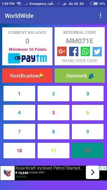 In This app we are providing some TASK ,you have to complete all TASK and also Click TASK 12 CLICK This and wait 30 sec to 45 sec and completing TASK 1.5 Ppoints added in your Wallet