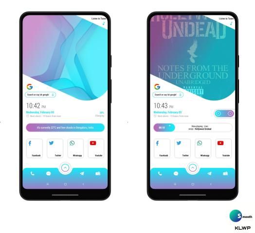Minimal UI theme for KLWP with an animated music pop out. Gradient colors to match the background wallpapers with a single screen setup.