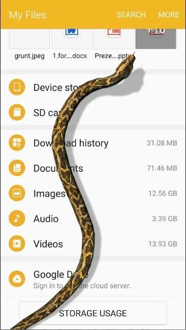 4. Setelah 20 detik ular virtual akan muncul di layar! Sebuah lelucon siap, korban takut :)