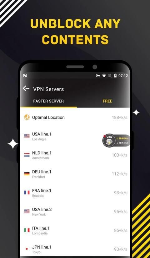 Snake VPN memiliki teknologi eksklusif yang memungkinkan Anda terhubung dengan cerdas ke server tercepat. Jika Anda berselancar di negara yang terhubung lemah, Anda dapat menikmati kinerja server kami yang lebih baik. Percepat menonton video dan menjelajahi web dengan lancar.