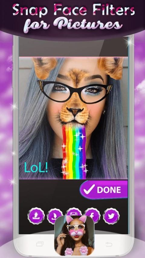 Now you can decorate your pictures with these awesome photo stickers with animal faces and place them instead of your head on your cool images. Our face changer app for Android is definitely one of the best picture editors you can find. Place a scary lion face instead of yours, share your virtual makeover on Facebook and make yourself unrecognizable. Don’t miss the chance to make personalized photos using our free sticker app and transform yourself into a wild animal. So, come on, download Snap Face Filters for Pictures and see it for yourself!