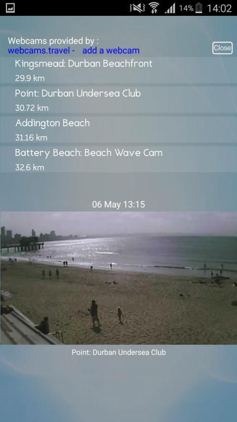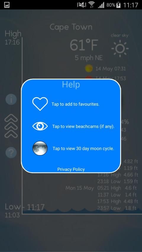 BARU! Ditambahkan kemampuan untuk melihat webcam pantai di daerah Anda (berdasarkan ketersediaan. Jika ada Cams tersedia, sebuah ikon mata akan muncul di aplikasi layar utama.