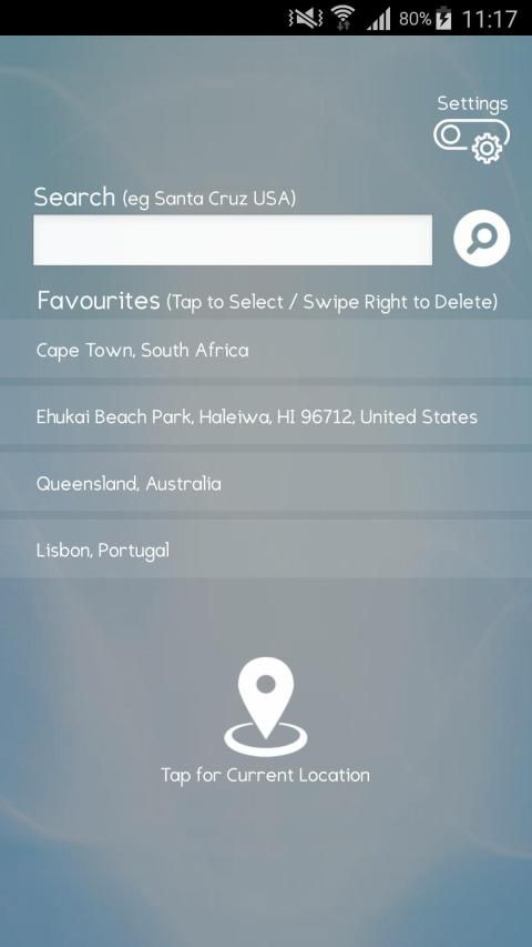 1. Search for locations around the globe and view tide data in the locations local time.