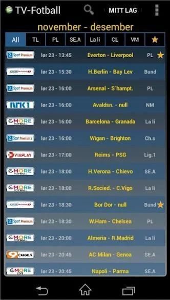 Ikhtisar sepakbola pada saluran Norwegia dan beberapa televisi asing. Anda dapat mengetahui kapan permainan yang dimainkan dan yang saluran mengirimkannya.
