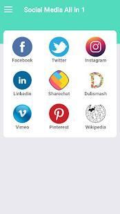 All Social Networks is an application that groups and provide an easy access to all social networks namely: Facebook, Twitter, Instagram, Linkedin, Wikipedia, Dubsmash, Sharechat, Vimeo and Pinterest.