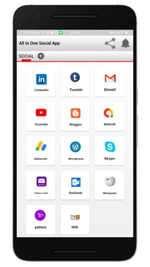 Aplikasi jejaring sosial serba ada ini adalah kumpulan dari semua aplikasi jejaring sosial teratas. Aplikasi ini akan memungkinkan Anda menggunakan semua aplikasi jejaring sosial secara bersamaan tanpa berpindah aplikasi.