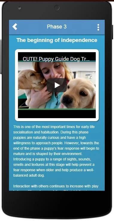 Aplikasi ini menyediakan saran praktis untuk anak anjing di sarang. Kegiatan menyarankan setiap minggu telah dirancang secara khusus untuk memenuhi kebutuhan perkembangan dan perilaku anak anjing tumbuh Anda. Kegiatan mencakup lima bidang utama;