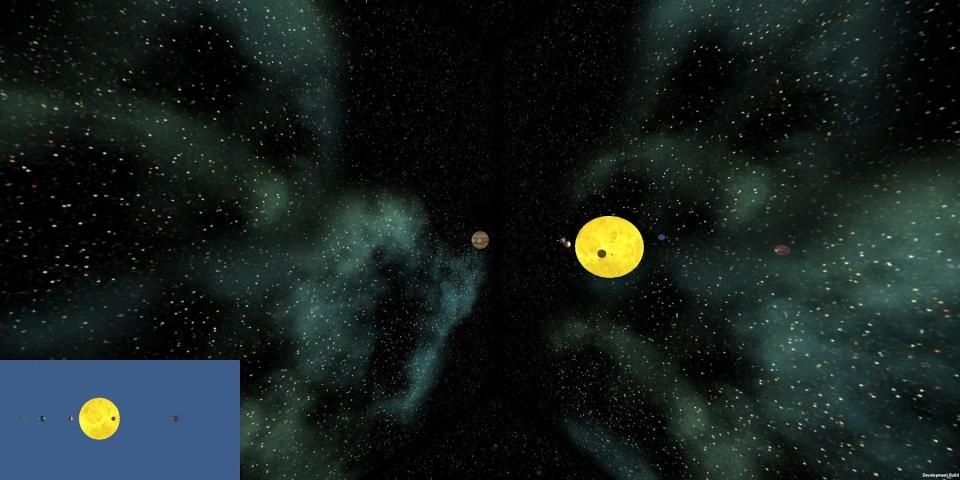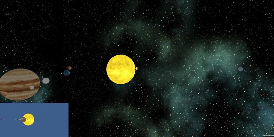 melihat simulasi 3D dari tata surya, yang terdiri semua 9 planet dengan ada bulan ditambah matahari, suara matahari membakar dan suara bel bulan termasuk, itu dibuat sehingga bisa merasa seolah-olah Anda benar-benar di ruang (diperkecil versi ruang tentu saja). Ini adalah tes dari versi VR aplikasi. Sentuh planet / bulan untuk fokus dan mengikutinya.