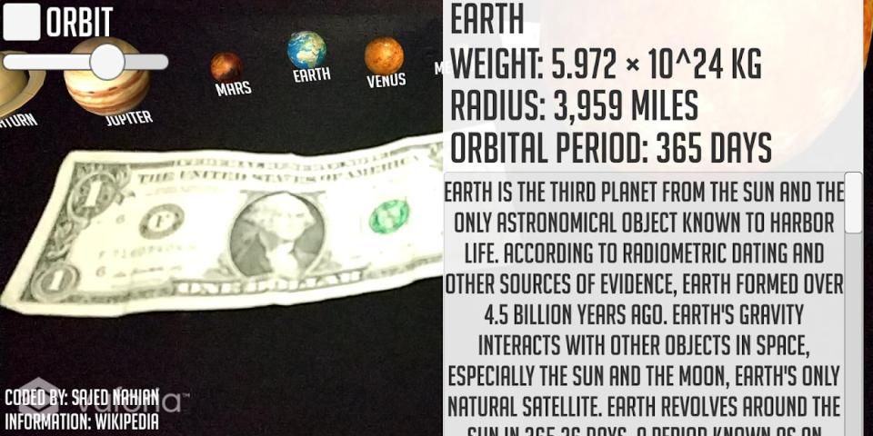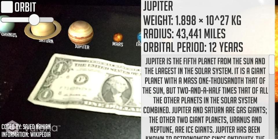 Pelajari tentang dan lihat tubuh di Tata Surya kita di lingkungan AR.