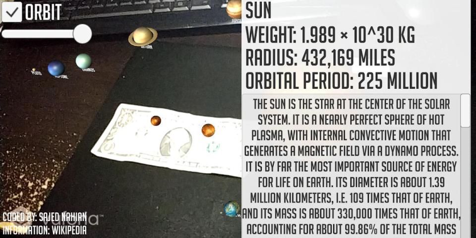 Saatnya untuk update aplikasi kamu. 20,000+ Pengguna mendownload Solar System AR versi terbaru di 9Apps secara gratis! Ini adalah salah satu aplikasi favorit saya. Aplikasi HOT ini di rilis tanggal 2018-11-14. Tunggu apa lagi, aplikasi ini akan mengagetkan anda.