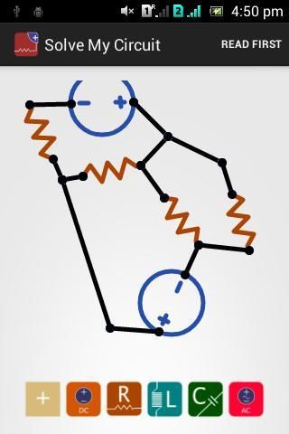 Aplikasi ini menggunakan Hukum Tegangan Kirchoff dan konsep umum analisis jala untuk memecahkan sirkuit. Hanya menggambar sirkuit, dan untuk setiap loop, terus menambahkan dalam apa saja yang diperlukan (R, L, C, V) melalui titik biru sampai mereka bertemu dan menjadi hitam. Tidak ada titik biru berarti semua loop yang lengkap.