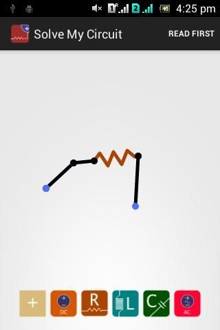 Sirkuit memecahkan aplikasi dengan fitur dasar DC dan AC perhitungan 1-frekuensi.
