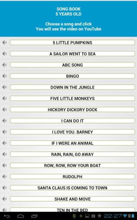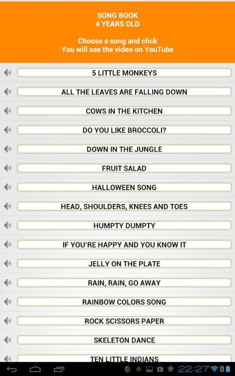 Aplikasi ini merupakan kumpulan lagu-lagu anak-anak dalam bahasa Inggris yang digunakan di sekolah La Devesa Elche, untuk 3, siswa berusia 4 dan 5 tahun.