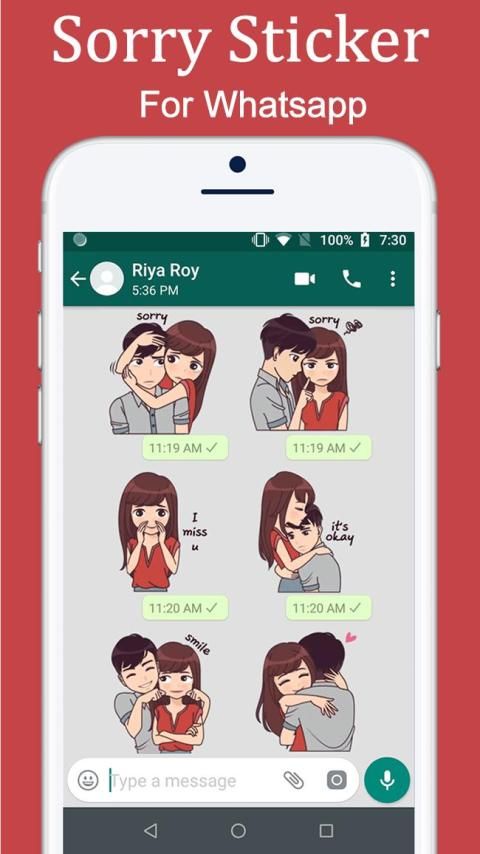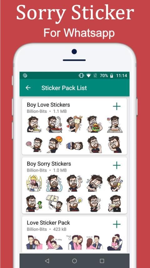 Free sticker app has sorry cartoon pack with different reactions and also forgive me quotes caption.