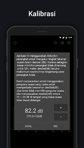 Nilai pengukur suara tidak seakurat pengukur suara nyata, hal ini disebabkan sebagian besar mikrofon perangkat selaras dengan suara manusia. Untuk memperbaikinya, gunakan pengukur suara yang sebenarnya untuk menyesuaikan kesalahan desibel sedekat mungkin sebelum digunakan. Jika Anda tidak memiliki meteran SPL yang sebenarnya, pergi ke tempat yang sangat sunyi di mana suara tidak dapat mendengar dan sesuaikan nilai bacaan menjadi 20 ~ 30dB.