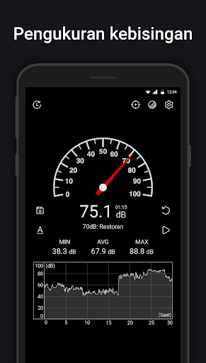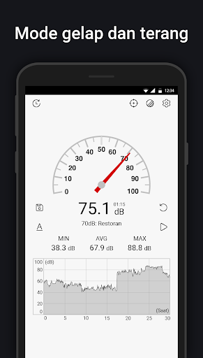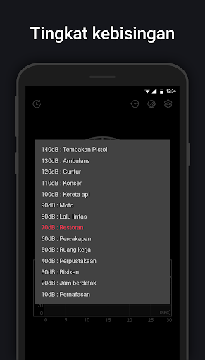 Pengukur Suara menggunakan mikrofon perangkat untuk mengukur kebisingan lingkungan dalam desibel (dB). Bandingkan dengan pengukur suara aktual, nilai desibel (dB) mungkin bervariasi.