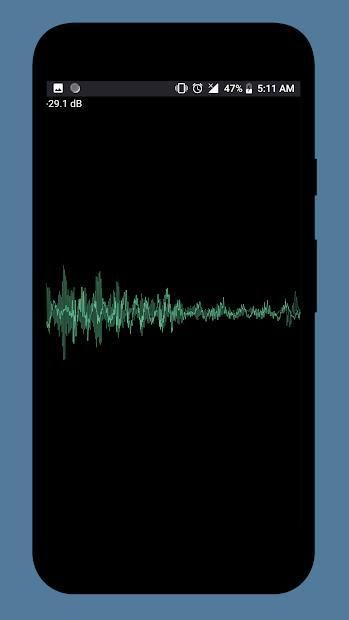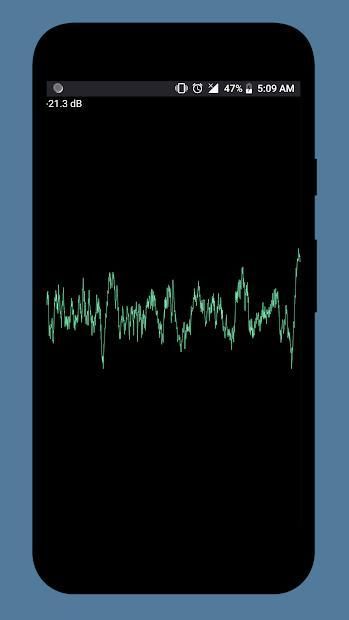 Anda dapat melihat bentuk gelombang suara saat mereka melewati mikrofon Anda secara real-time. Catatan: Aplikasi ini tidak merekam audio hanya mendengar dan menggambar gelombang suara di layar. Di bagian kiri atas Anda juga dapat melihat besarnya suara dalam desibel.