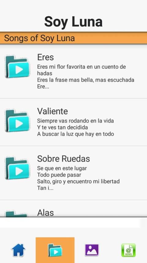 Pilih lagu dan kemudian bermain. Dengan aplikasi ini Anda dapat memutar musik Soy Luna di mana saja dan kapan saja dengan mudah.