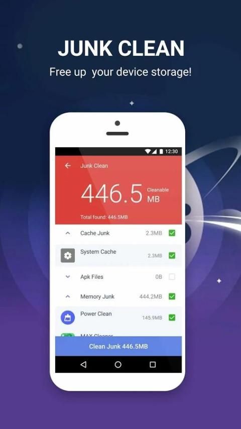 Membebaskan ruang penyimpanan pada perangkat Anda, menghapus file sampah, termasuk sistem cache, cache image, Download folder, isi clipboard, cache video dan Cache iklan.