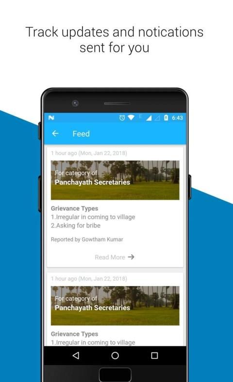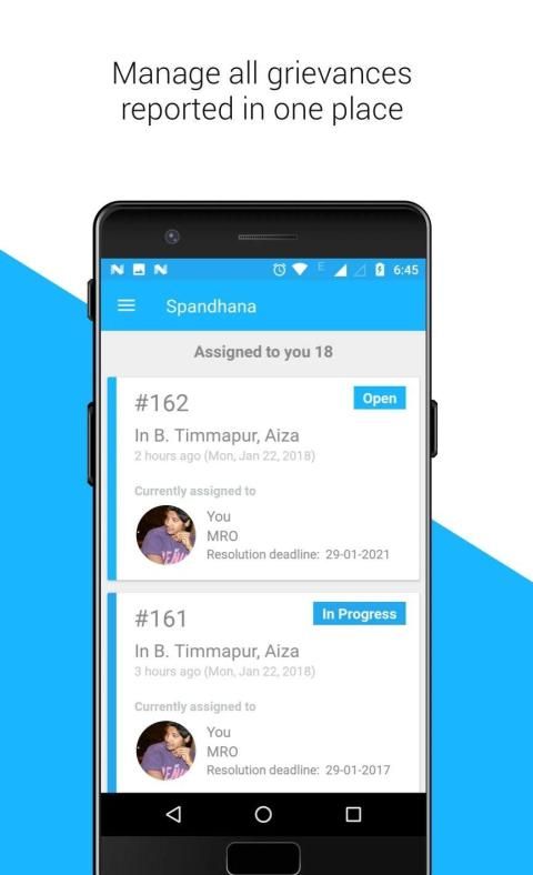 Officer's app for Grievance reporting and re-addressal application Nivedhana. With this app an officer can: