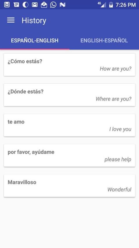 Aplikasi gratis penerjemah cepat diterjemahkan dari Spanyol ke Inggris dan Inggris ke Spanyol (Traducción del español al inglés) kata-kata serta kalimat lengkap.