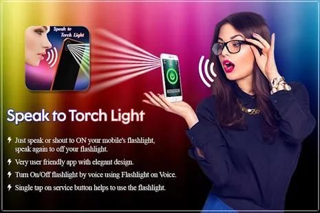 Berbicara dengan Torch Light: aplikasi Senter melalui Anda mendapat waktu lampu flash hanya Anda berbicara satu kata dan flash light menyala. Anda harus perlu cahaya lampu kilat kamera ke atas lampu flash juga perangkat Anda memiliki sensor gerakan Anda berbicara kata dan flash light adalah mulai.
