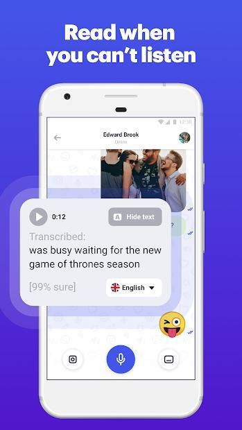 READ WHEN YOU CAN’T LISTEN: Tap to transcribe voice messages so you can read them instead. Available in over 30 languages!