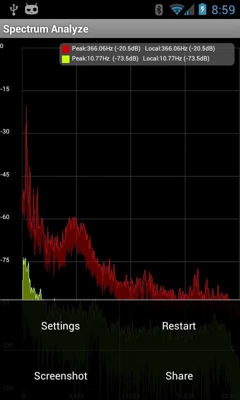 Spectrum Menganalisis memberikan real-time spektrum data dari mikrofon pada perangkat Android Anda.