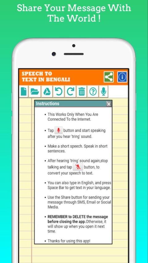 Dengan aplikasi ini, Anda dapat berbicara dalam bahasa Bengali di Mic dan pidato Anda secara otomatis dikonversi ke bahasa Bengali.
