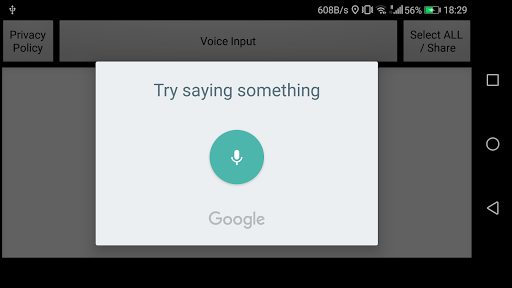 Ucapan sederhana untuk aplikasi teks bebas untuk input dengan suara dan keyboard. Rotasi layar, fungsi berbagi.